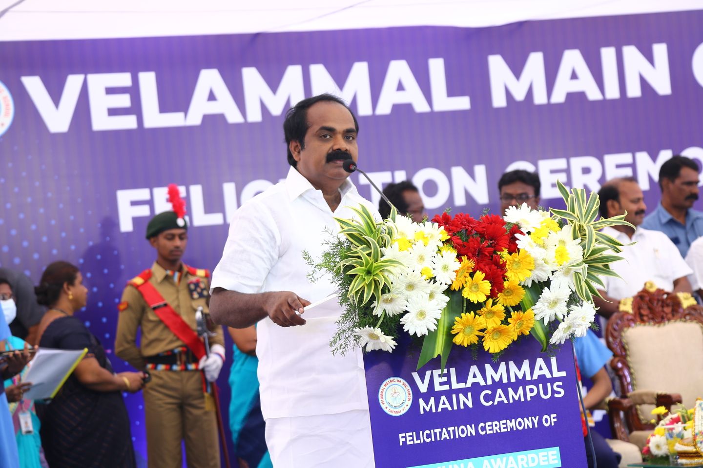 அன்று முகப்பேர் வளாகத்தில் உள்ள வேலம்மாள் முதன்மைப் பள்ளியில் மதிப்புமிக்க அர்ஜுனா விருதைப் பெற்றதற்காக செஸ் இளவரசர் ஜி.எம். ஆர். பிரக்ஞானந்தாவை வாழ்த்துவதற்காக, பிரமாண்டமான பாராட்டு விழா நடைபெற்றது. இந்நிகழ்ச்சி சமீபத்தில் டெல்லி ராஷ்டிரபதி பவனில் நடந்த தேசிய விளையாட்டு மற்றும் சாகச விருதுகள் வழங்கும் – 2022 விழாவில், ஜனாதிபதி. திரௌபதி முர்முவிடமிருந்து நாட்டின் இரண்டாவது மிக உயர்ந்த விளையாட்டு விருதைப் பெற்றமைக்காக நடைபெற்றது.