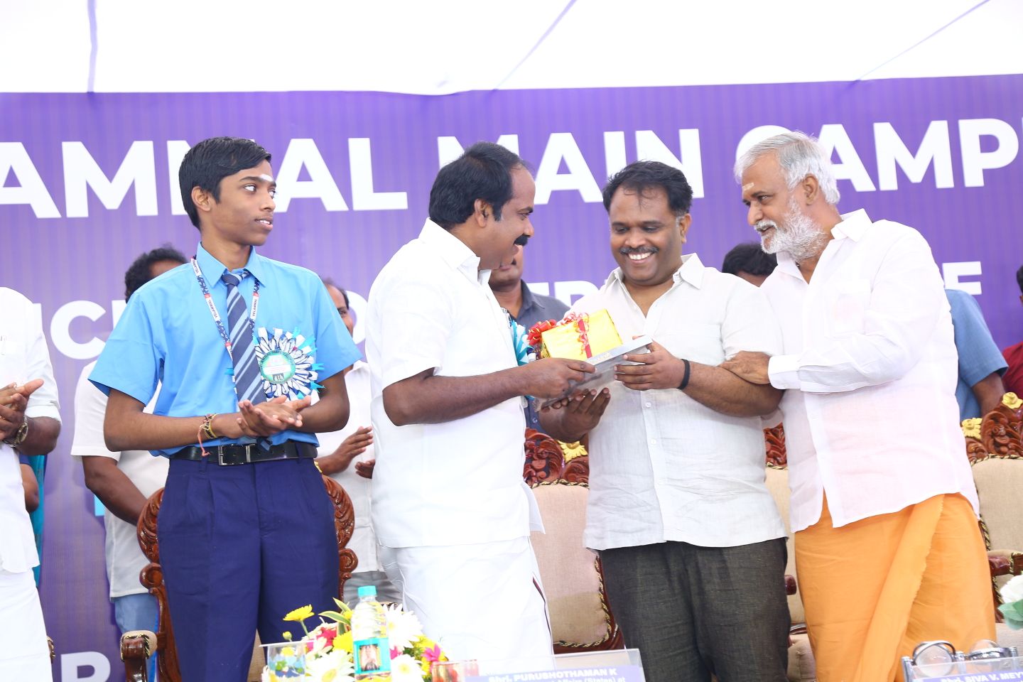 This grand ceremony was presided over by Shri Siva V Meyyanathan, Honorable Minister of Environment Climate Change, Youth Welfare & Sports Development of Tamilnadu. The school endowed the Chess Icon with a cash award of Rupees Seven Lakhs and paid a special tribute for scripting history.