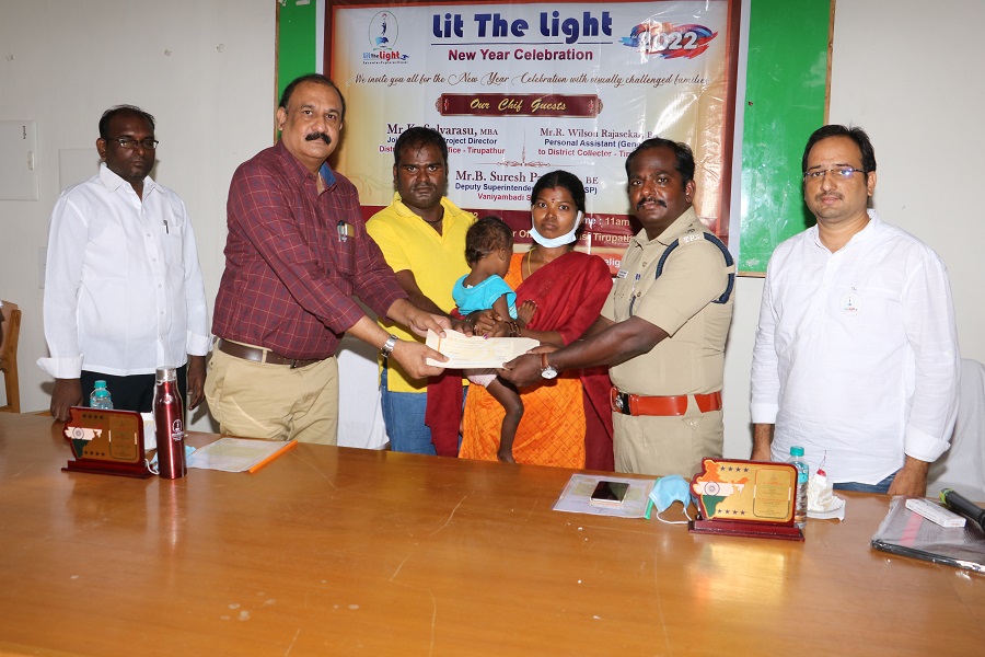 • Lit the Light has Adopted a 10-year-old girl with a visual impairment from Tirupathur district. She will be taken care and support will be provided until adulthood and ready to face the real world.