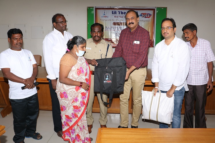 • Provided livelihood for 32 Visually Impaired vendors, by providing the required list of items such as Herbal oil, a bag to carry their items to be sold in the passenger train along with a Grocery kit for their family.