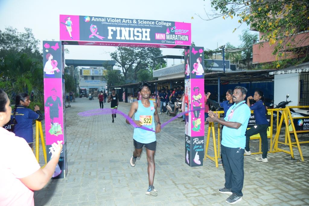 A successful Mini-Marathon, ‘Run for a Cause’ was organized by YRC & RRC of Annai Violet Arts and Science College on Saturday, 3rd February 2024, to raise awareness about cancer among the public. The primary goal was to educate and encourage a healthier lifestyle while emphasizing the importance of early detection and treatment.