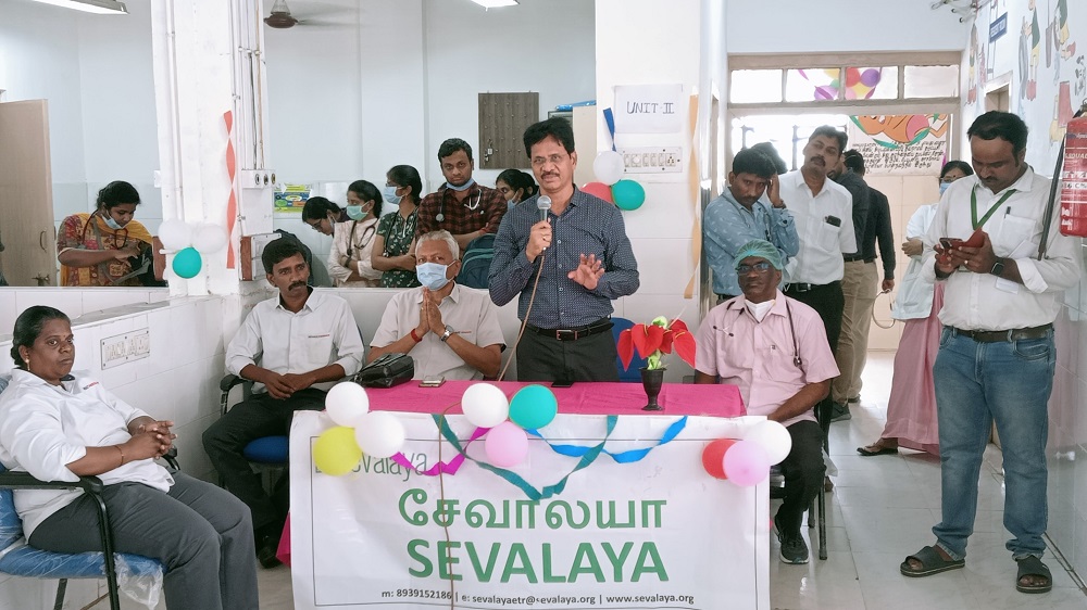 Sevalaya organized a children’s day celebration for 50 children in the Paediatric ward at Medical College, chengalpattu on 14th November 2022. Dr K Narayanasamy, Dean of Medical College, chengalpattu, and K Amirthalingam, Plant Engineering & CSR, Renault Nissan automotive were Chief Guests.
